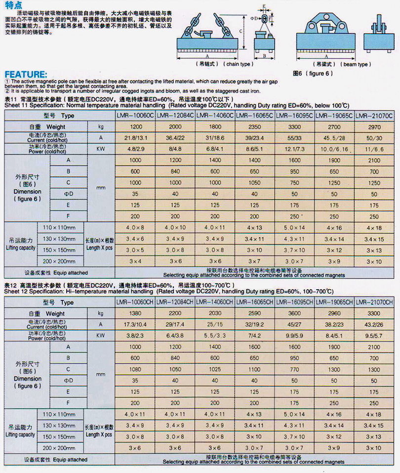 LMR-C系列吊運高低參差不齊方坯、圓坯,型鋼用活動磁極矩形起重電磁鐵