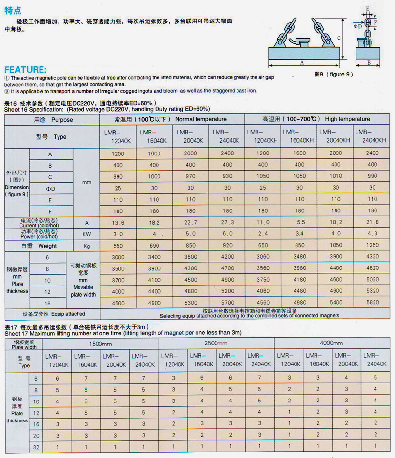 LMR-K(40型)系列吊運(yùn)多數(shù)鋼板用矩形起重電磁鐵
